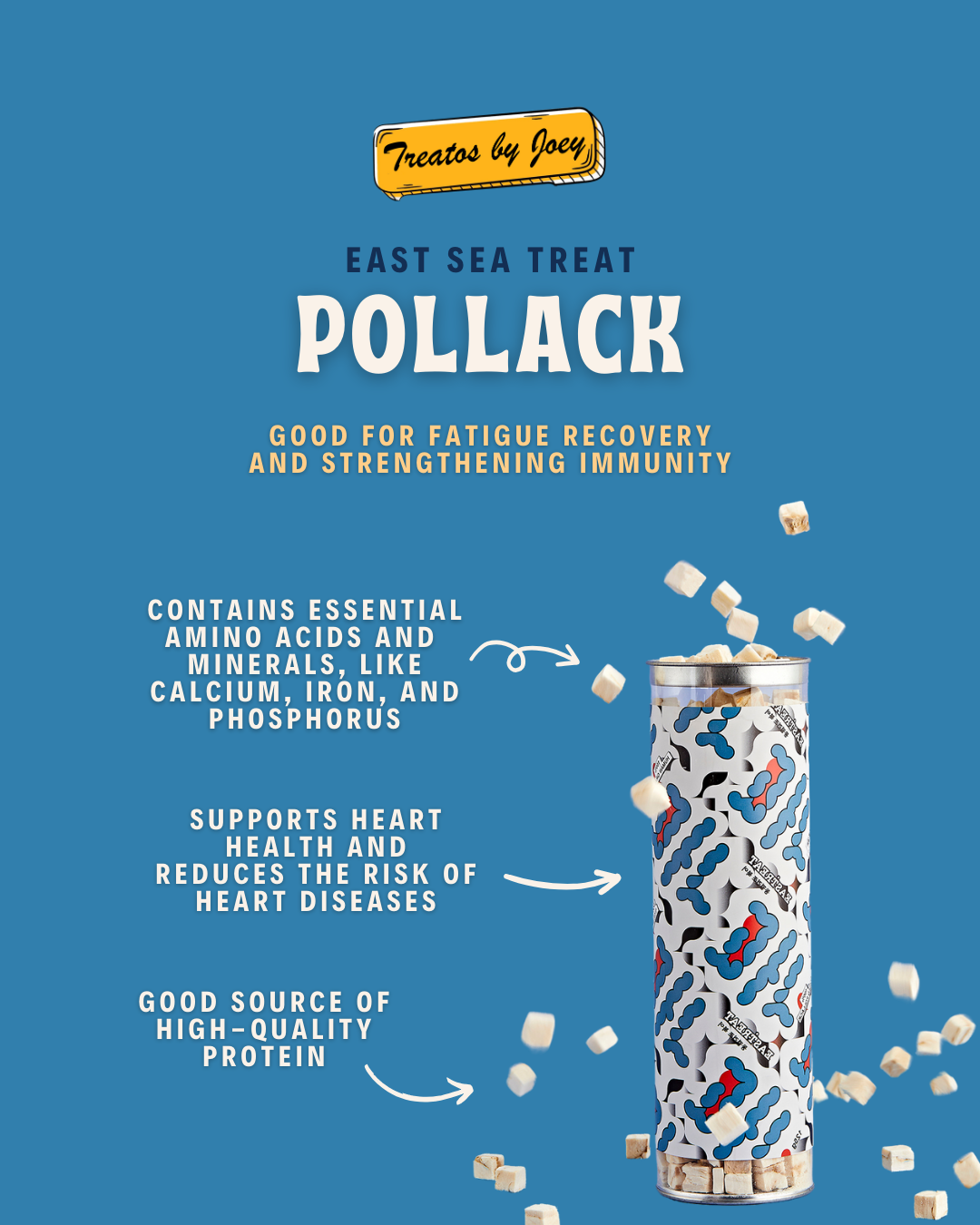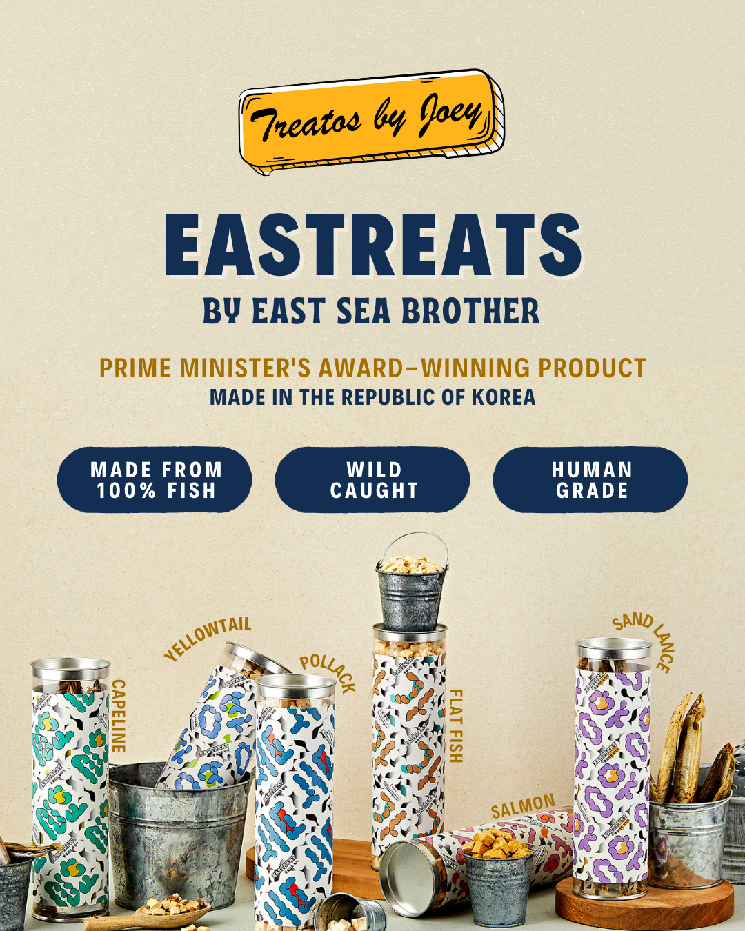 Introducing Eastreats β the premium, all-natural seafood dog treats straight from the pristine waters of Korea! Crafted with love and expertise by East Sea Brother, these treats are a testament to quality and care, ensuring your furry friend gets nothing but the best.