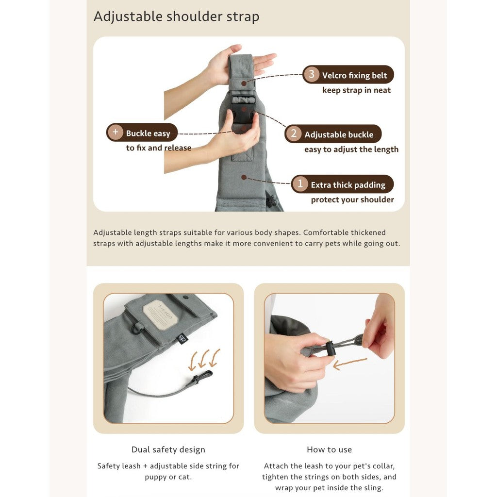 The FikaGO Pet Sling offers hands-free comfort and convenience for pet parents on the move. Lightweight, breathable, and secure, it’s perfect for carrying small pets with ease—whether at home, traveling, or on daily walks.